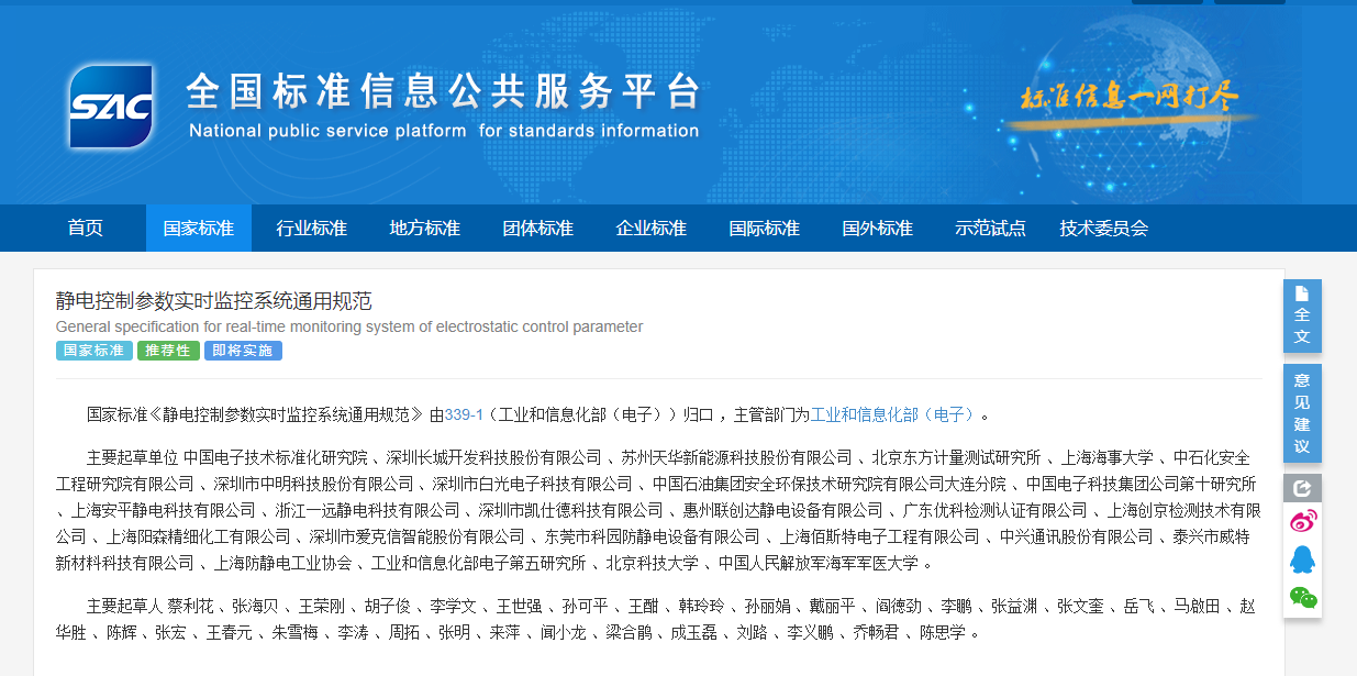 近期,由工業(yè)和信息化部立項、中國電子技術標準化研究院歸口管理的國家標準GB/T 44787—2024《靜電控制參數(shù)實時監(jiān)控系統(tǒng)通用規(guī)范》正式發(fā)布,將于2025年5月1日起實施。作為我國首個自主制定的靜電控制參數(shù)實時監(jiān)控領域國家標準,該標準填補了國內外技術標準空白,指引相關產業(yè)公平、科學、良性發(fā)展。