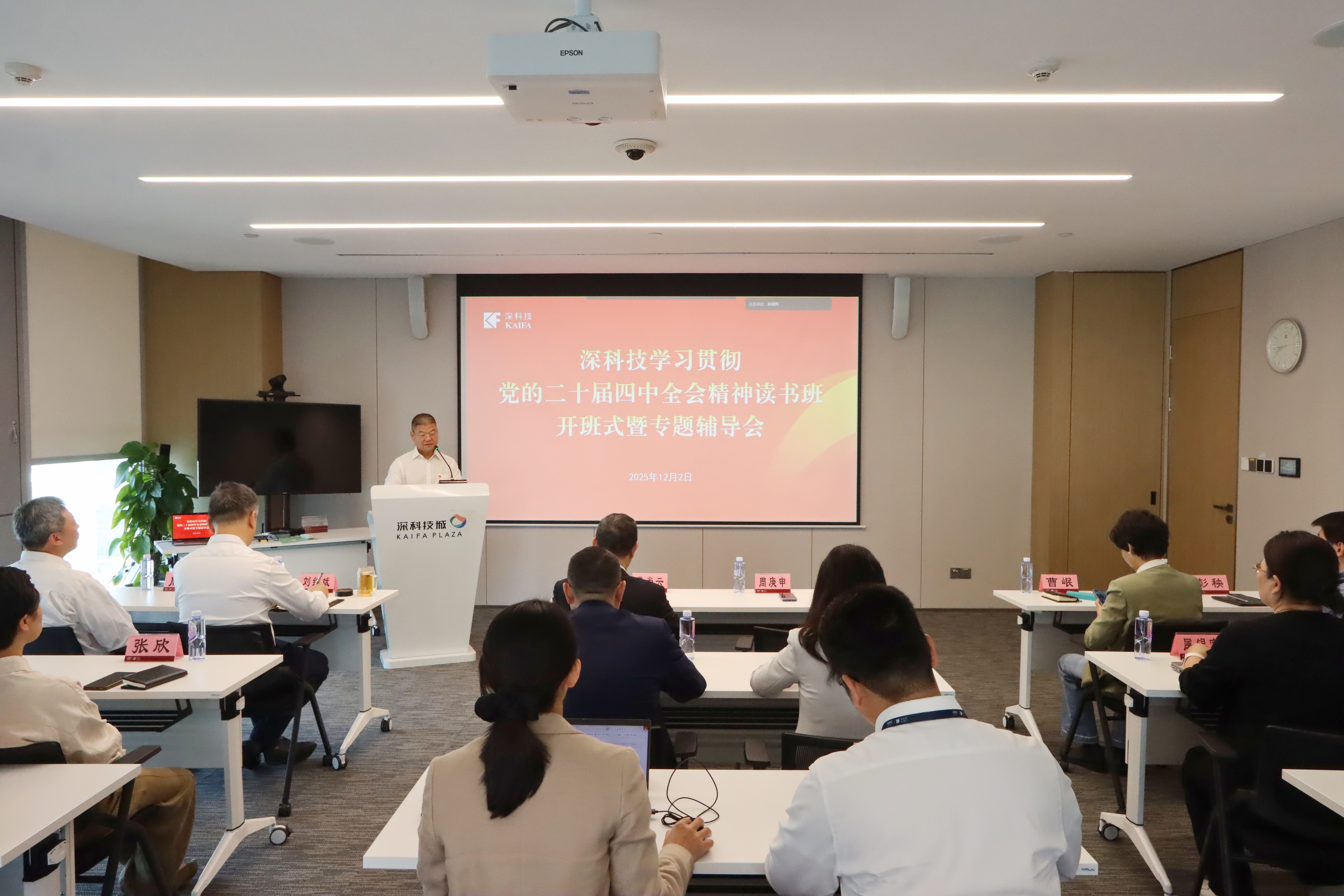 12月2日,深科技黨委舉辦深入學習貫徹黨的二十屆四中全會精神讀書班開班式暨專題輔導會。公司黨委委員、高級副總裁周庚申主持開班式。