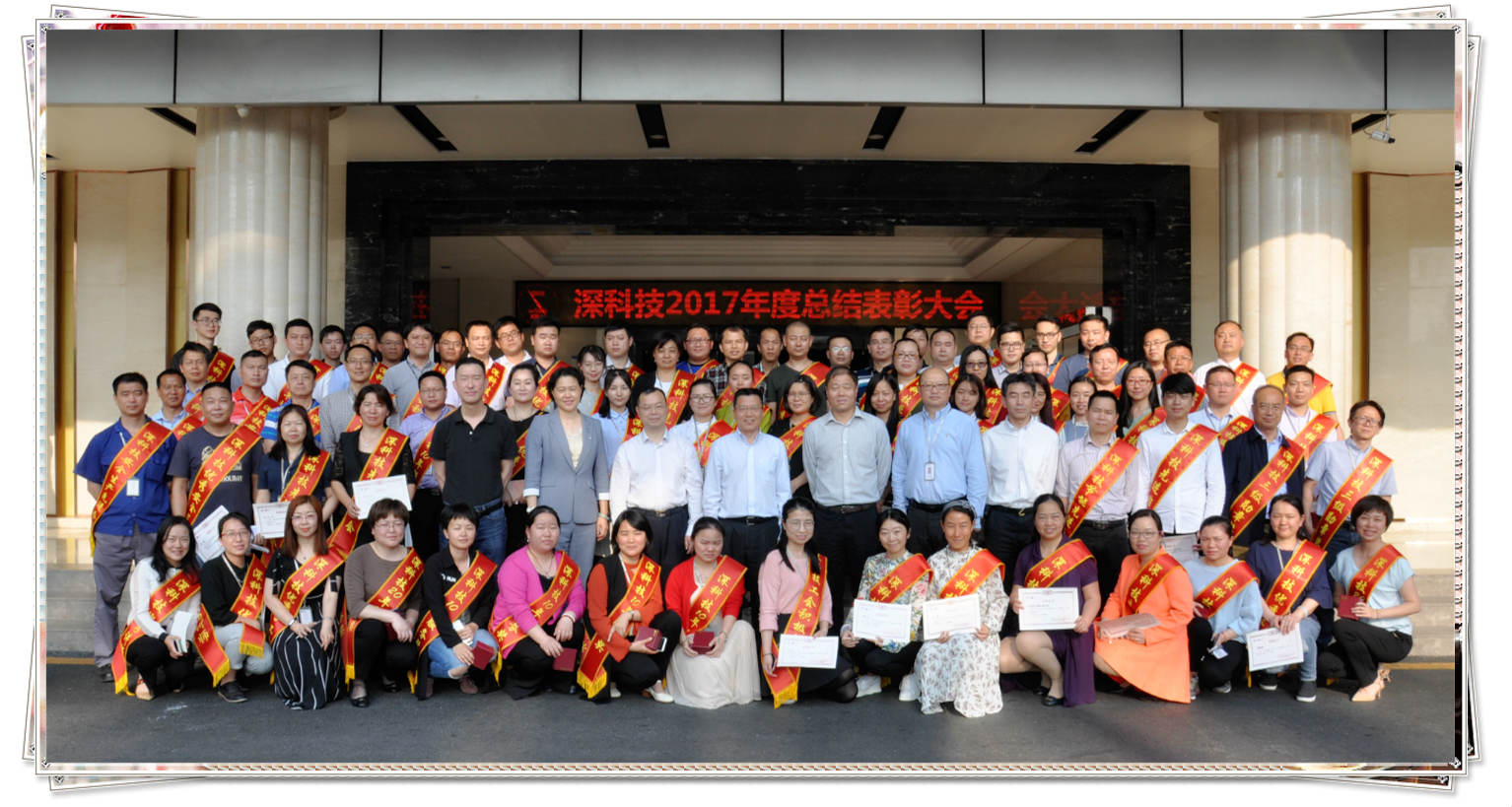 2018年4月3日下午,深科技2017年度總結表彰大會在公司俱樂部大廳舉行,公司黨委書記、副總裁陳朱江,副總裁于化榮、莫尚云,紀委書記、工會主席才淦,總裁助理張儉、邱記賢、馬曉波出席大會并為獲獎員工代表頒獎。公司各部門、分/子公司先進集體、先進個人的獲獎代表、管理人員及員工代表約280人參加了會議。會議由紀委書記、工會主席才淦主持。